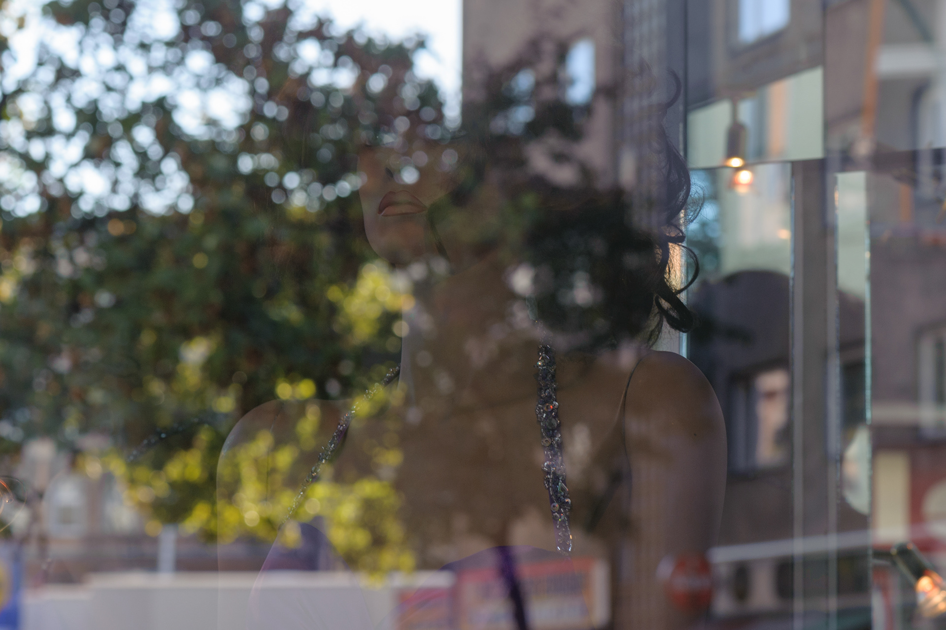 I used to live in an area of Berlin which was also home to quite a few shops featuring mannequins in their window displays. I became fascinated by how the streetscape would be partially reflected in the glass in front of the dummies. From certain viewpoints the distinction of what was inside and outside of the window would become blurred and a new scene could be created. I find the resulting images both surreal, eerie and perhaps also a bit disturbing. The dreamlike structure of these are a combination of portraiture, cityscape and collage.